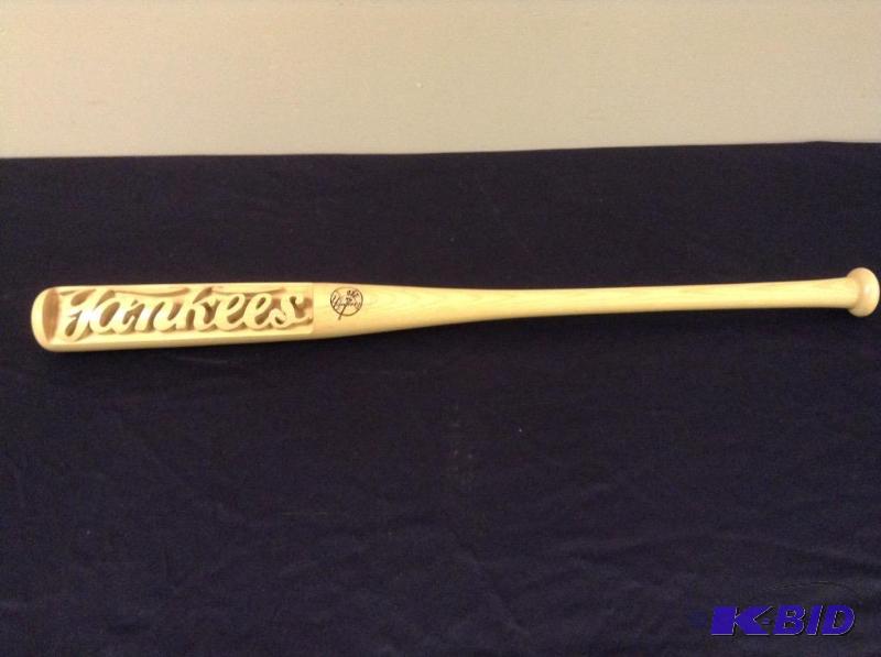 SPORTING ITEMS:Collectible Yankee baseball bat, fishing rods and reels, framed 75 year anniversary Wheaties box,baseball and football cards
